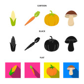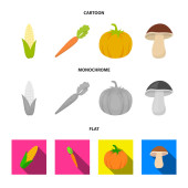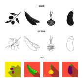 Oliwki na oddział, groszek, cebula, bakłażan. Ikony kolekcja zestaw warzyw w kreskówce, płaskie, www ilustracji symbol wektor styl monochromatyczny.