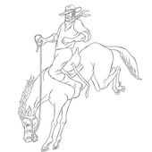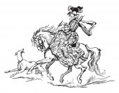 Kapturek Robin na koniu. Robin Hood dzieciństwa. Dziecko Robin Hood. Średniowieczne legendy. Bohaterowie Legend średniowiecznych.