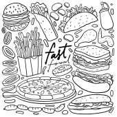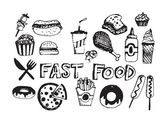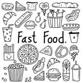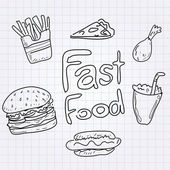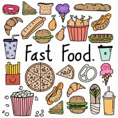 Ręcznie rysowane szkic fast food z napisem. Doodle zestaw, ilustracji wektorowych.