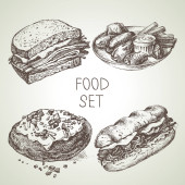 Ręcznie rysowane szkic fast food z napisem. Doodle zestaw, ilustracji wektorowych.
