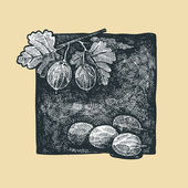 Gałąź leszczyny i orzechy laskowe orzechy realistyczne na białym tle. Ilustracja wektorowa żywności. Grawerowanie Vintage art. Rośliny rysunek ręka. Szkic czarno-białe.