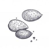Realistyczne orzechy pistacji na białym tle. Ilustracja wektorowa żywności. Grawerowanie Vintage art. Rośliny rysunek ręka. Szkic czarno-białe.
