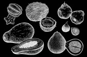 Zdjęcie "Orzech laskowy, orzech, orzeszki ziemne, migdałów, nerkowca, pistacjowy, orzech brazylijski, nasiona słonecznika i realistyczne nasiona dyni na białym tle. Ilustracja wektorowa. Grawerowanie Vintage art. Do rysowania ręcznego. Czarno-białe." może być wykorzystywane do celów osobistych i komercyjnych zgodnie z warunkami zakupionej licencji Royalty-free. Obraz jest dostępny do pobrania w jakości wysokiej rozdzielczości do 5760x3840.