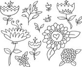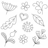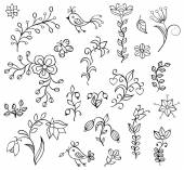 Zestaw kwiatowy elementy abstrakcyjne. Doodle wyciągnąć rękę. Ilustracja wektorowa