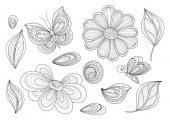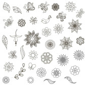 Zestaw kwiatowy elementy abstrakcyjne. Doodle wyciągnąć rękę. Ilustracja wektorowa