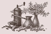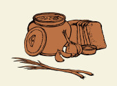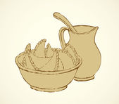 szkic wektor ukraińskim lunch. ciepłej zupy, chleba, czosnek, cebula