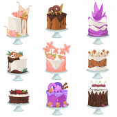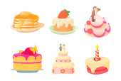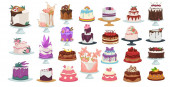 Urodziny tort wektor sernik cupcake za szczęśliwe narodziny party pieczone ciasto czekoladowe i deser z piekarni ustawić ilustracja na białym tle