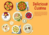 Dania kuchni świata pokrywy lub przepis książki projekt okładki książki z zupa pikantne i gorący ilustracja.
