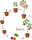 Roślin z nasion do wiśniowego drzewa. Etapie wzrostu roślin