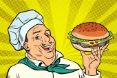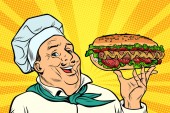 Szef kuchni uśmiechający się ulicy żywności. Kebab Shawarma Doner