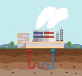 Produkcja przemysłowa, budowa ziemi tło. Fabryka w płaski.