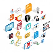 Zestaw ikon globalnej komunikacji, izometryczny styl