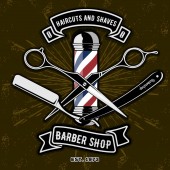 Zdjęcie "Barber shop vintage etykiety, odznaka lub godło z nożyczkami, Maszynka do strzyżenia włosów i maszynki do golenia na szarym tle. Fryzury i goli. Ilustracja wektorowa" może być wykorzystywane do celów osobistych i komercyjnych zgodnie z warunkami zakupionej licencji Royalty-free. Obraz jest dostępny do pobrania w jakości wysokiej rozdzielczości do 5760x3840.