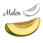 Wektor ilustracja. Literowanie Melon. Ikona Melon. Pomysł na café, restauracja, kuchnia, plakat, t-shirt.