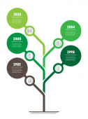 Drzewo rozwoju przedsiębiorstw. Pionowej osi czasu infografiki. Linia czasu wykres tendencji i trendów. Koncepcja biznesowa z 5 Opcje, części, czynności i procesy.