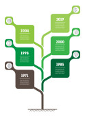 Pionowej osi czasu infografiki. Rozwój i wzrost firmy. Linia czasu tendencje. Wykres trendów. Koncepcja biznesowa z 6 opcje, części, czynności i procesy.