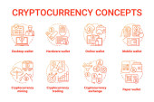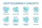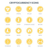 Kryptowaluta ikony ilustracje dla sieci web, aplikacji, witryny, raportów, prezentacji itd.