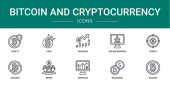 Kryptowaluta ikony ilustracje dla sieci web, aplikacji, witryny, raportów, prezentacji itd.