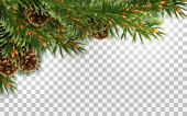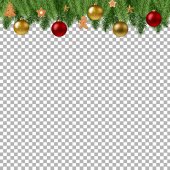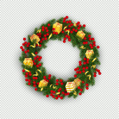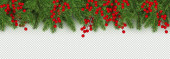 Boże Narodzenie i nowy rok krawędź pozioma realistyczne gałęzi choinki, wianek z świecące żarówki, holly jagody, serpentine Element dla uroczysty projekt na przezroczystym tle
