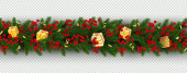 Zdjęcie "Boże Narodzenie i nowy rok krawędź pozioma realistyczne gałęzi choinki, wianek z świecące żarówki, holly jagody, serpentine Element dla uroczysty projekt na przezroczystym tle" może być wykorzystywane do celów osobistych i komercyjnych zgodnie z warunkami zakupionej licencji Royalty-free. Obraz jest dostępny do pobrania w jakości wysokiej rozdzielczości do 5760x3840.