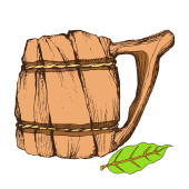 Dwie myjki dla rosyjskiej łaźni do higieny ciała. Zestaw akcesoriów do kąpieli, sauny. Ręka, rysunek styl szkic. Na białym tle obiekt na białym tle.