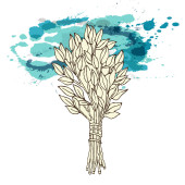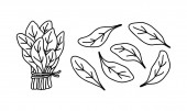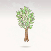 Brzoza Trzepaczki do sauna, rosyjska łaźnia do higieny ciała. Zestaw akcesoriów do kąpieli, sauny. Ręka, rysunek styl szkic. Na białym tle obiekt na białym tle.