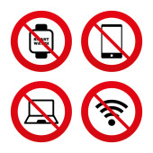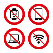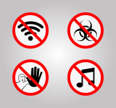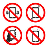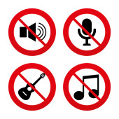 Nie róbcie hałasu, bez telefonów komórkowych, bez muzyki, głośnych dźwięków, milczą znaki zakazu czerwony.
