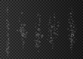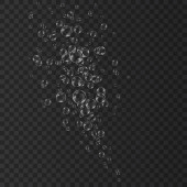 Podwodne bańki powietrza, wody lub tlenu na białym tle. Napój musujący. Błyszczące iskry w morzu, akwarium. Szampan. Woda sodowa. Struktura wektora podmorskiego.