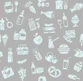 Żywności, wzór, zielony, kolor, spożywczy, wektor. Jedzenie i napoje, produkcja i sprzedaż. Tło wektor. Zielone ikony na zielone pola.