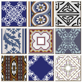 Zdjęcie 16 tradycyjnymi portugalskimi kafelkami w różnych kolorach i wzorach