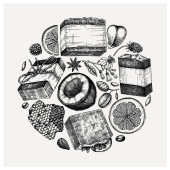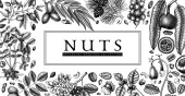 Ręcznie rysowane plakat z różnego rodzaju orzechy i nasiona na białym tle