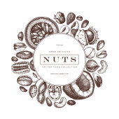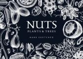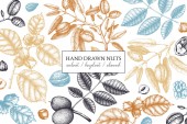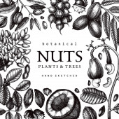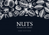 Ręcznie rysowane plakat z różnego rodzaju orzechy i nasiona na białym tle