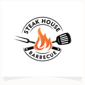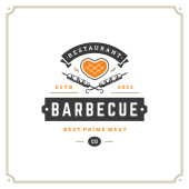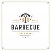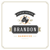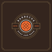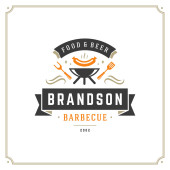 Zdjęcie "Grill restauracja logo wektor ilustracja. Barbecue steak house menu godło, kiełbasa z grilla na widelec sylwetka. Vintage Typografia odznaka projekt." może być wykorzystywane do celów osobistych i komercyjnych zgodnie z warunkami zakupionej licencji Royalty-free. Obraz jest dostępny do pobrania w jakości wysokiej rozdzielczości do 5760x3840.