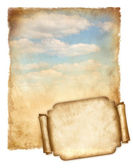Sterowiec pływające transparent tekst na stary papier, vintage grafiki.
