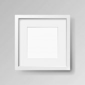Kwadrat pustej ramki biały na białej ścianie. Szablon wektor