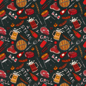 Zdjęcie "Płynny wzór letni grill Grill Party. Stek, kiełbasa, siatka na grilla, szczypce, widelec, ogień, keczup. Ręcznie rysowana ilustracja wektora. Styl bazgrołów" może być wykorzystywane do celów osobistych i komercyjnych zgodnie z warunkami zakupionej licencji Royalty-free. Obraz jest dostępny do pobrania w jakości wysokiej rozdzielczości do 5760x3840.