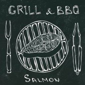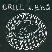 Zdjęcie "Bar z grillem. Płynny wzór letni grill Grill Party. Piwo, stek, kiełbasa, siatka na grilla, szczypce, widelec, ogień. Czarna tablica w tle i kreda. Ręcznie rysowane wektor ilustracji styl Doodle" może być wykorzystywane do celów osobistych i komercyjnych zgodnie z warunkami zakupionej licencji Royalty-free. Obraz jest dostępny do pobrania w jakości wysokiej rozdzielczości do 5760x3840.