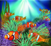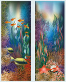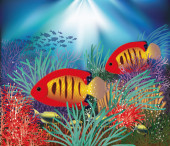 Podwodne transparent z Betta Splendens i Tetra kardynał ryb, ilustracji wektorowych