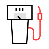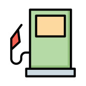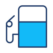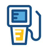 Stacja benzynowa w kolorach szary i niebieski na białym tle
