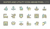 Automatyczne wody kroplówki zestaw ikon nawadniania, 64 x 64 perfect pixel i edytowalne obrysu.