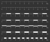 Ilustracja wektorowa kreatywnych linia skali mapy ustawiona na białym tle na przezroczystym tle. Sztuka projektowania jednostek miary. Abstrakcyjne pojęcia matematyczne stosunek, frakcja element graficzny