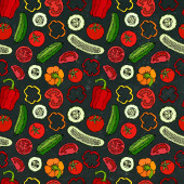 Warzywa bez szwu wzór z ogórków, czerwone pomidory, papryka, burak, marchew, cebula, czosnek, chili. Świeża sałatka. Ręcznie narysowana ilustracja. Styl bazgrołów. Czarna plansza tle i kreda