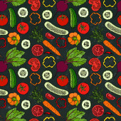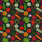 Zdjęcie "Warzywa bez szwu wzór z ogórków, czerwone pomidory, papryka, burak, marchew, cebula, czosnek, chili. Świeża sałatka. Ręcznie narysowana ilustracja. Styl bazgrołów. Czarna plansza tle i kreda" może być wykorzystywane do celów osobistych i komercyjnych zgodnie z warunkami zakupionej licencji Royalty-free. Obraz jest dostępny do pobrania w jakości wysokiej rozdzielczości do 5760x3840.