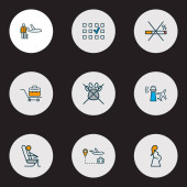 Podpisać zestaw ikon z zagrożenia porażenia prądem elektrycznym, uważaj na otworzenie drzwi, nakrycia głowy i inne elementy należy zachować ostrożność. Ilustracja na białym tle wektor symbole.