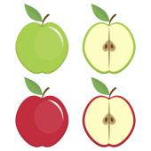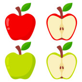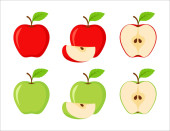 Żółte, zielone i czerwone jabłka clipartów bajki. Krążkami jabłka.