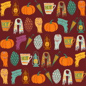 Wzór na The Theme z szczęśliwy dzień Dziękczynienia z naklejki zbioru obiektów. Kukurydza, dynia, Turcja, Acorn, drzewa, jabłko, gruszka