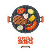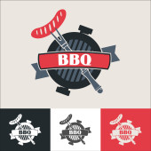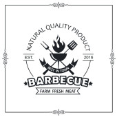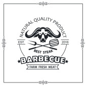 Premium jakości sprzęt do grillowania. Emblemat wektor, logo. Głowa krowy. Widelec skrzyżowane szefa kuchni i łopata. Wołowinę najwyższej jakości.