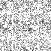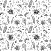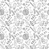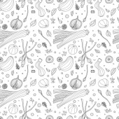 Warzywa bez szwu wzór z ogórków, czerwone pomidory, papryka, burak, marchew, cebula, czosnek, chili. Świeża sałatka. Zdrowe wegetariańskie jedzenie. Ręcznie rysowane ilustracja styl Doodle