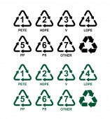 Zdjęcie "Zestaw ikon kodu identyfikacji żywicy. Znakowanie wyrobów z tworzyw sztucznych. Materiały z tworzyw sztucznych. Symboli recyklingu do pakowania, makulaturowy symbole materiałów opakowaniowych" może być wykorzystywane do celów osobistych i komercyjnych zgodnie z warunkami zakupionej licencji Royalty-free. Obraz jest dostępny do pobrania w jakości wysokiej rozdzielczości do 5760x3840.