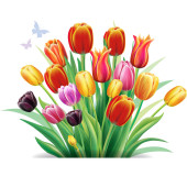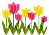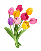 bukiet czerwonych i żółtych tulipanów. Ilustracja wektorowa.